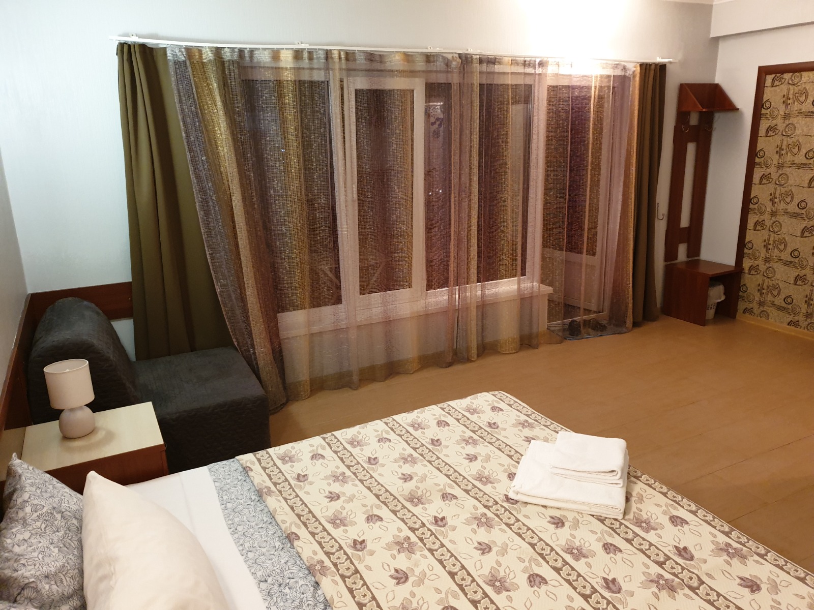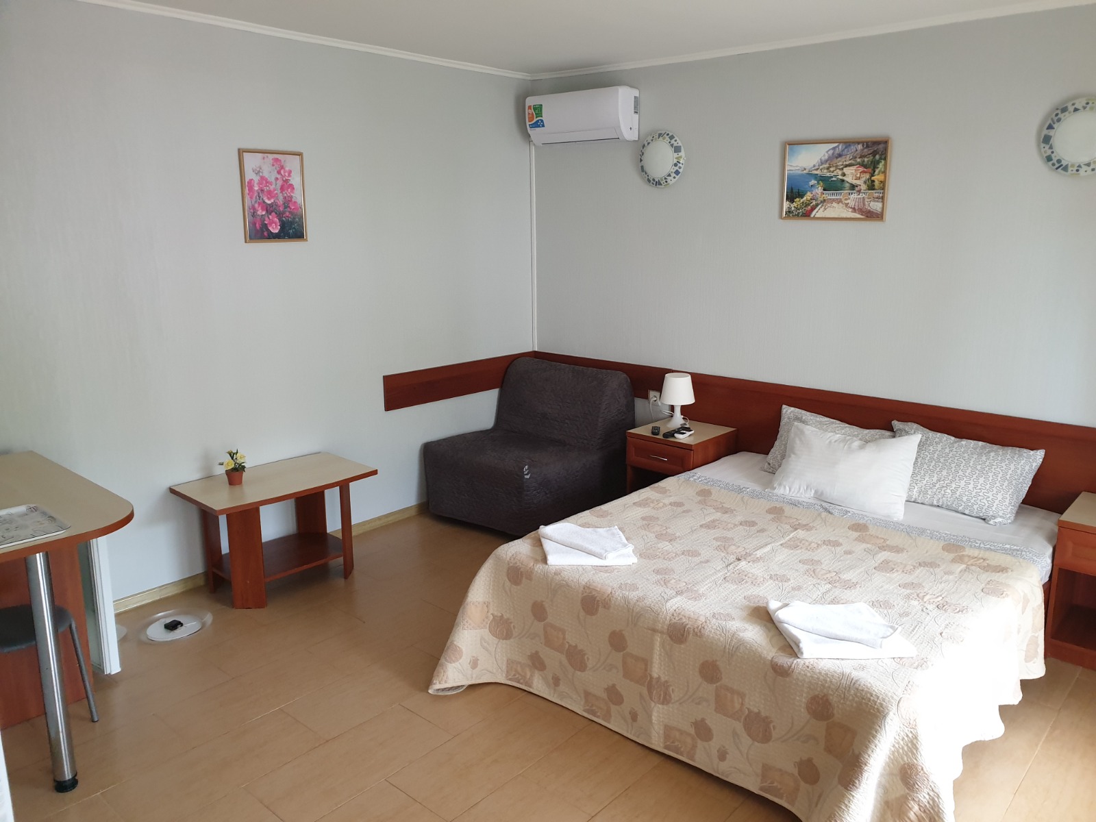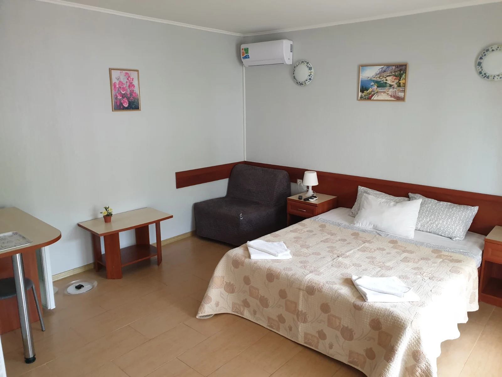 Просторный уютный номер на 3 места. Расположены на 2 и 3 этажах с видами на бассейн или горы. В оснащение номера входит: 2х спальная кровать, футон, LCD телевизор, сплит система, холодильник, санузел с душевой, выход на свою террасу с сушилкой, столиком и легкими креслами. Цены: 15.05-31.05: 2250р. 01.06-30.06: 2700р. 1.07-31.08: 3700р. 1.09-20.09: 2800р. 21.09-30.09: 2300р.