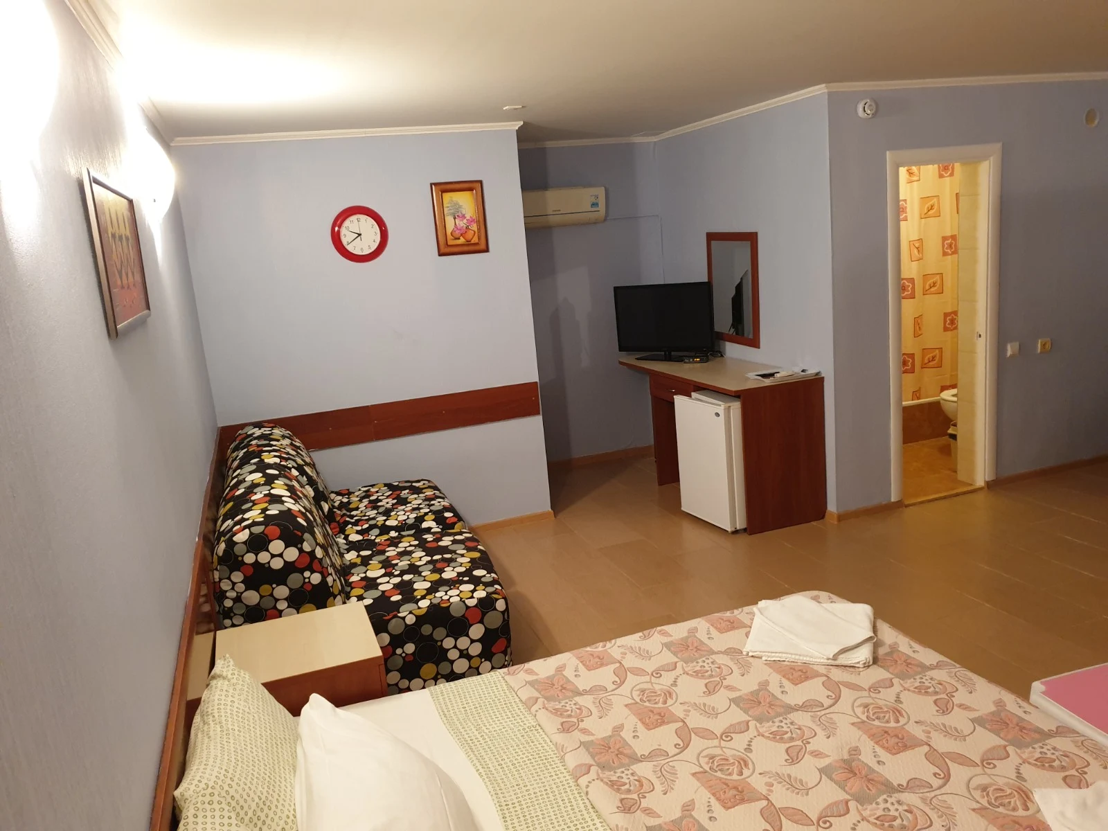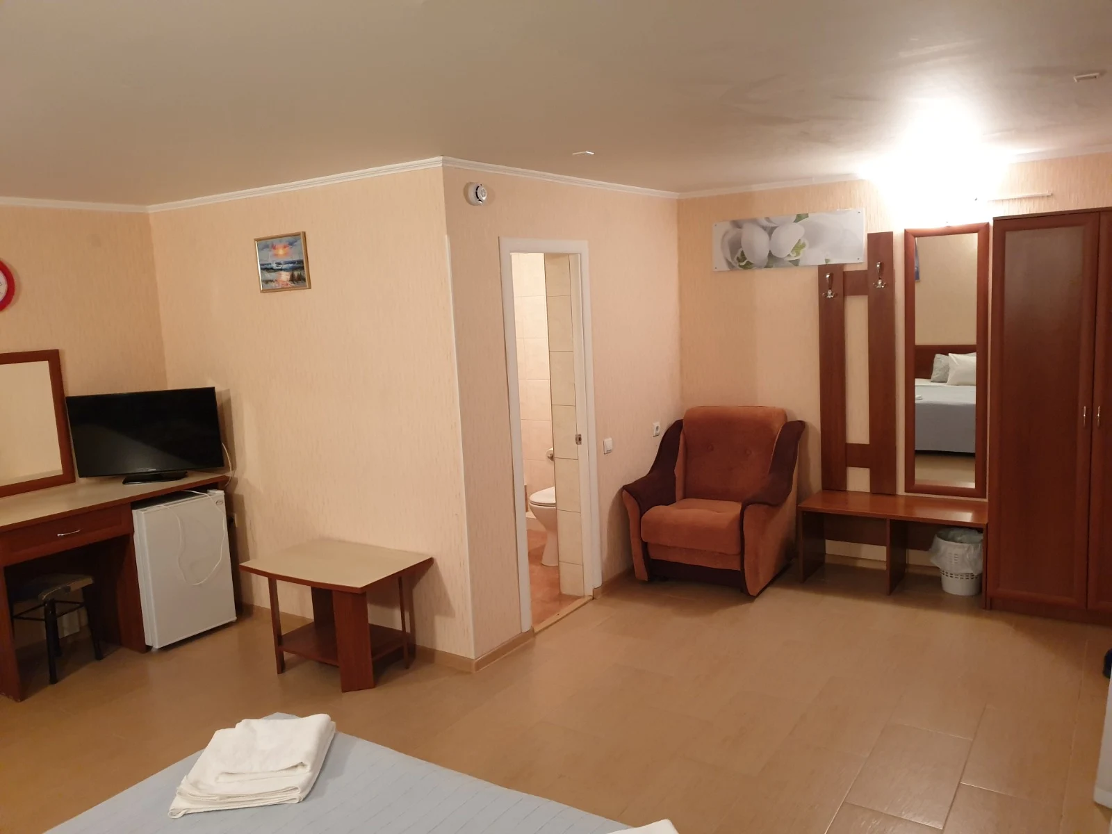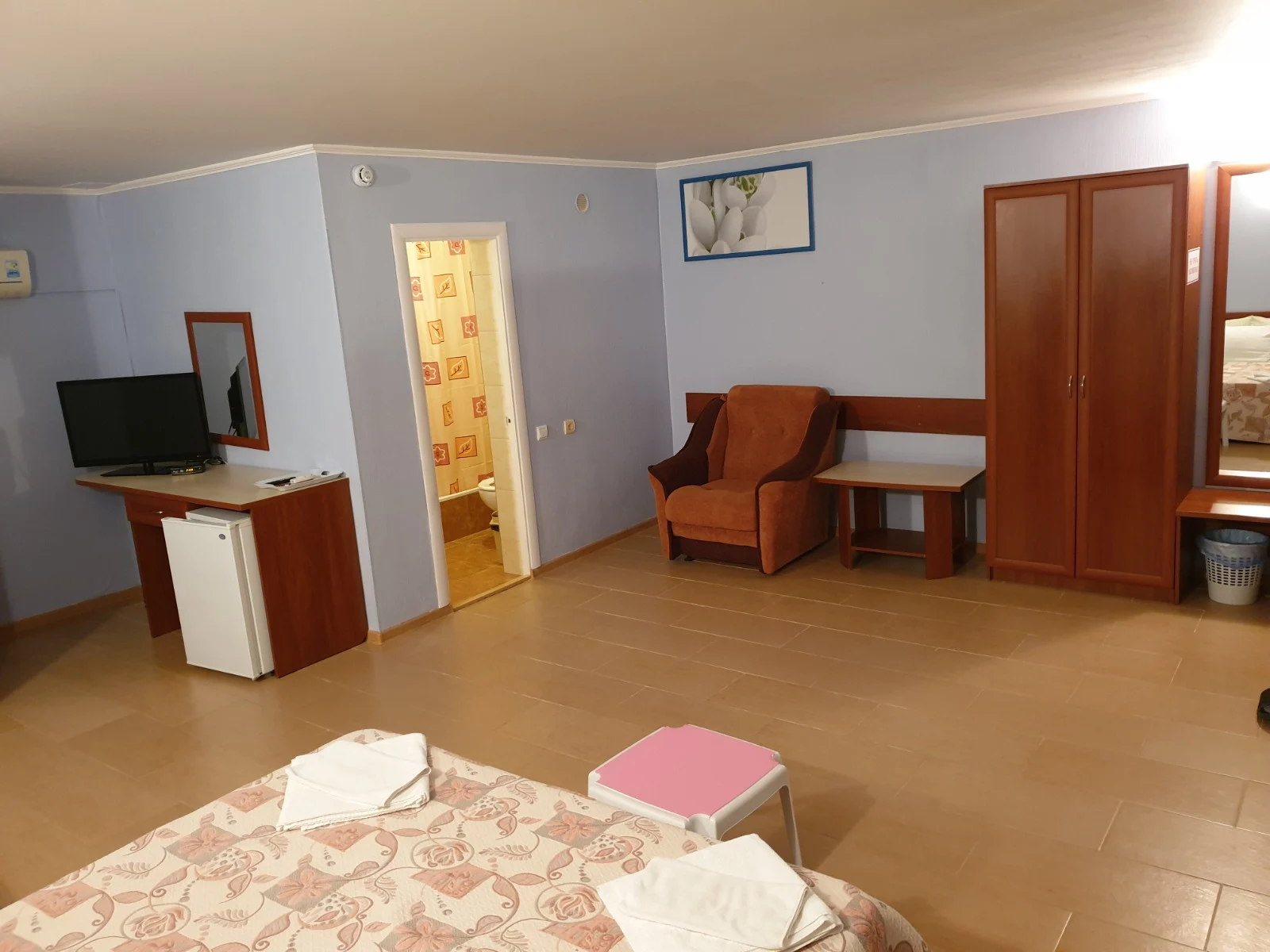 Просторный номер на 4 человека, с возможностью 1 доп. места. Расположен на 4 этаже с видами на бассейн или горы. В оснащение номера входит: 2х спальная кровать, 2 футона, LCD телевизор, сплит система, холодильник, санузел с душевой, выход на свою террасу с сушилкой, столиком и легкими креслами. Цены: 15.05-31.05: 3000р. 01.06-30.06: 3600р. 1.07-31.08: 4500р. 1.09-20.09: 3500р. 21.09-30.09: 3000р.