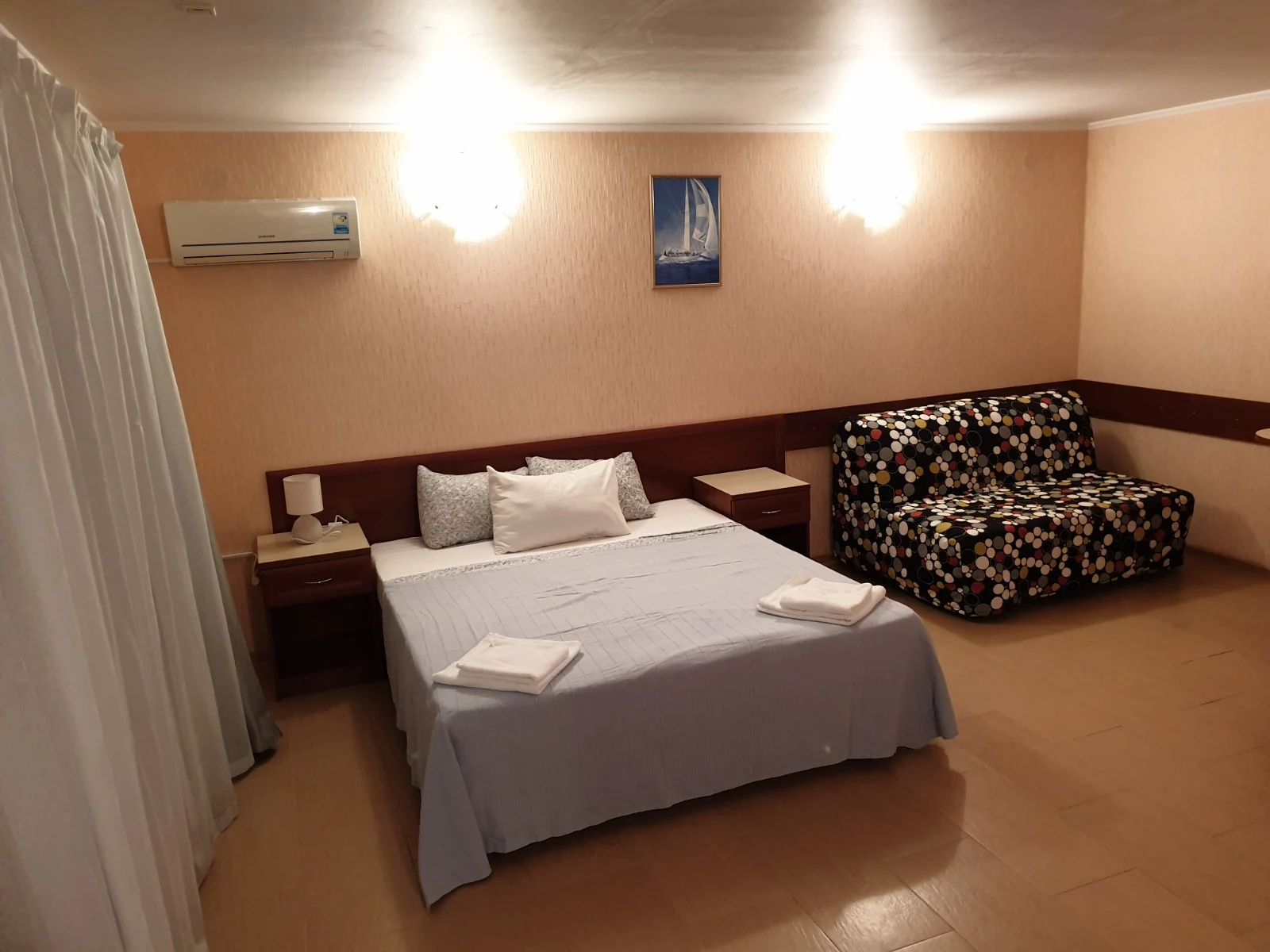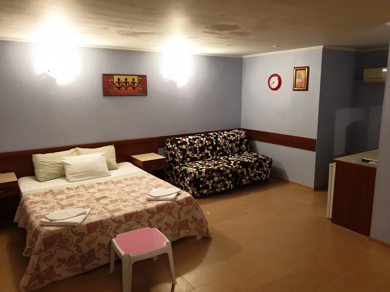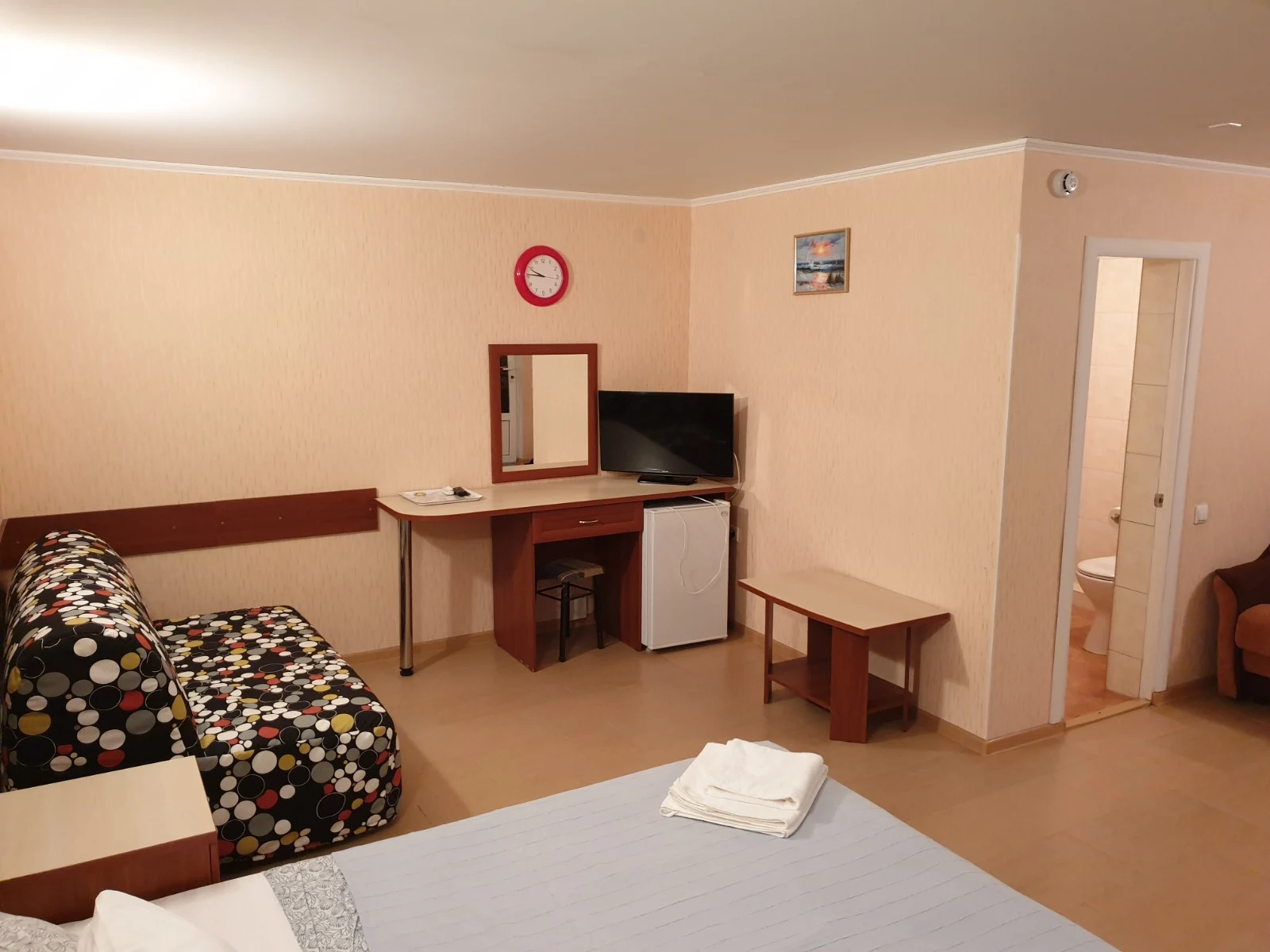 Просторный номер на 4 человека, с возможностью 1 доп. места. Расположен на 4 этаже с видами на бассейн или горы. В оснащение номера входит: 2х спальная кровать, 2 футона, LCD телевизор, сплит система, холодильник, санузел с душевой, выход на свою террасу с сушилкой, столиком и легкими креслами. Цены: 15.05-31.05: 3000р. 01.06-30.06: 3600р. 1.07-31.08: 4500р. 1.09-20.09: 3500р. 21.09-30.09: 3000р.